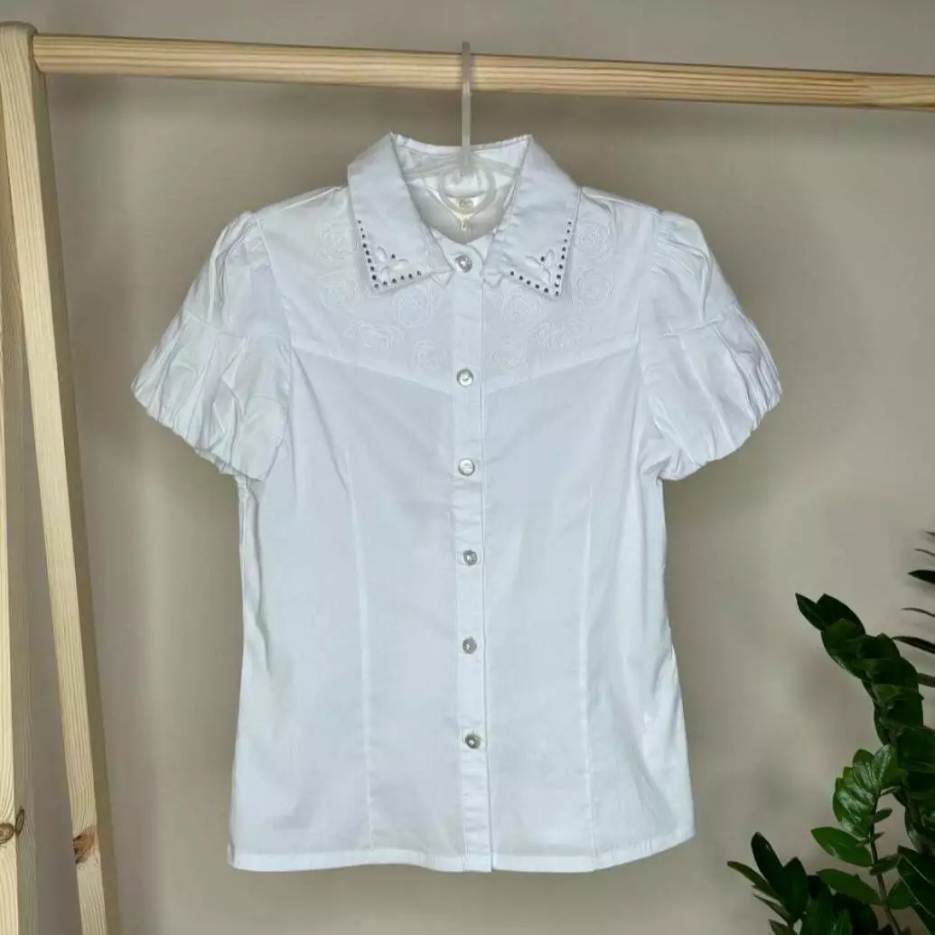 Блуза зі зйомним комірцем. в комплекті є ще додатковий комір без камінчиків дів. Білий 60046 DELORAS