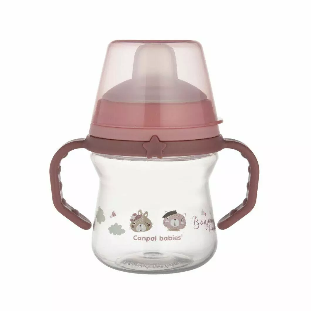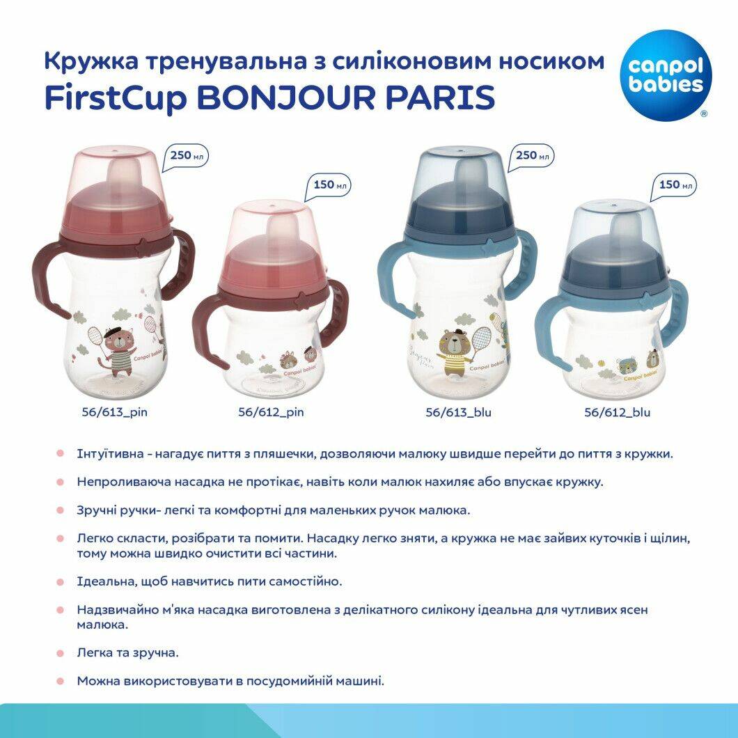Canpol babies Кружка тренувальна з силіконовим носиком FirstCup 150 мл BONJOUR PARIS - рожева 56/612_pin CANPOL