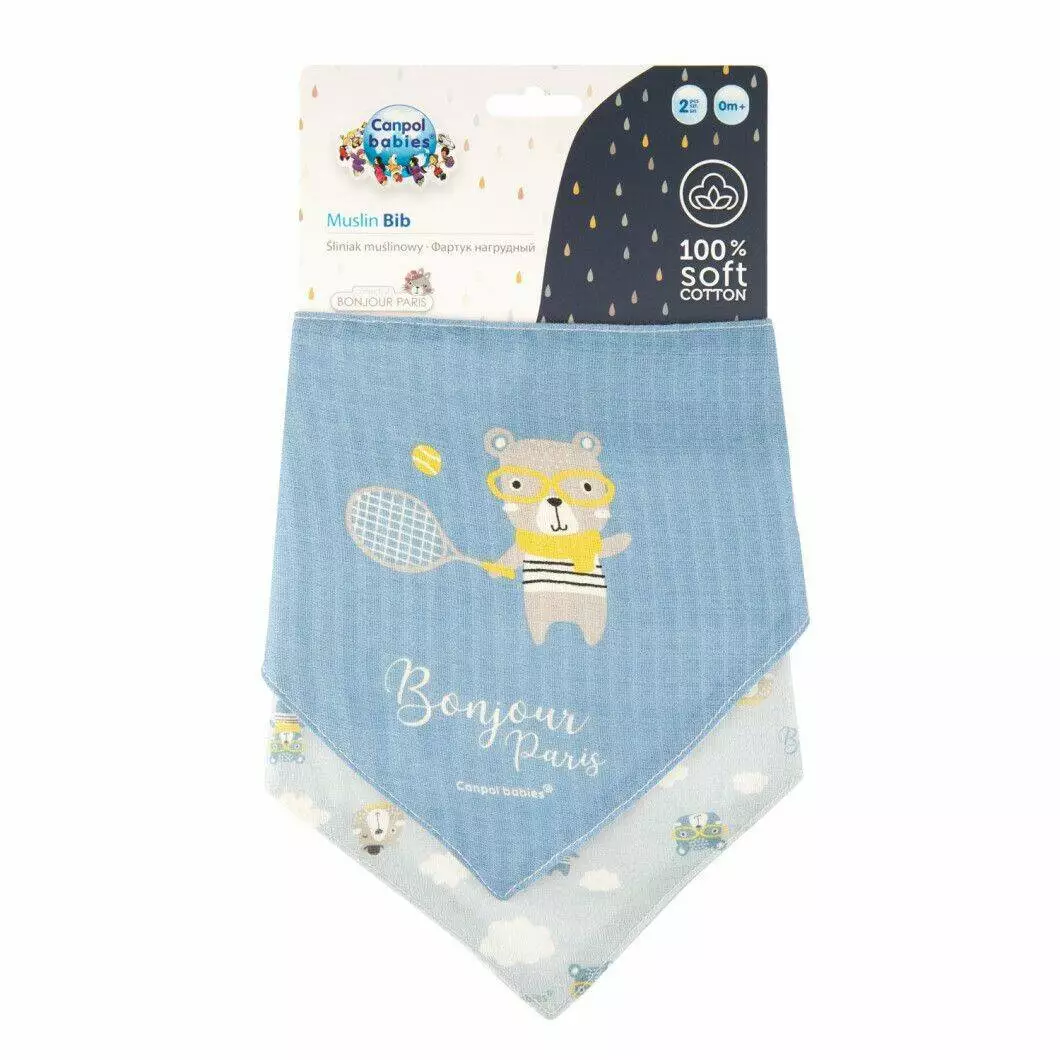 Canpol babies Слинявчик мусліновий 2 шт. BONJOUR PARIS блакитний 26/900_blu CANPOL