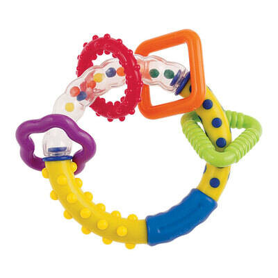 удобной форме и прорезиненным элементам, погремушку легко