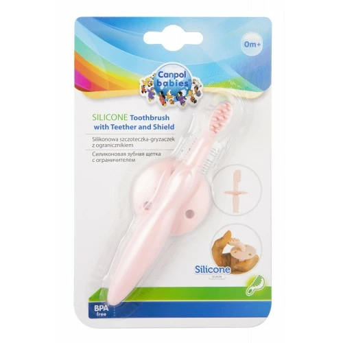 CANPOL Canpol babies Силіконова щітка для зубів з обмежувачем - рожева 51/500_pin CANPOL