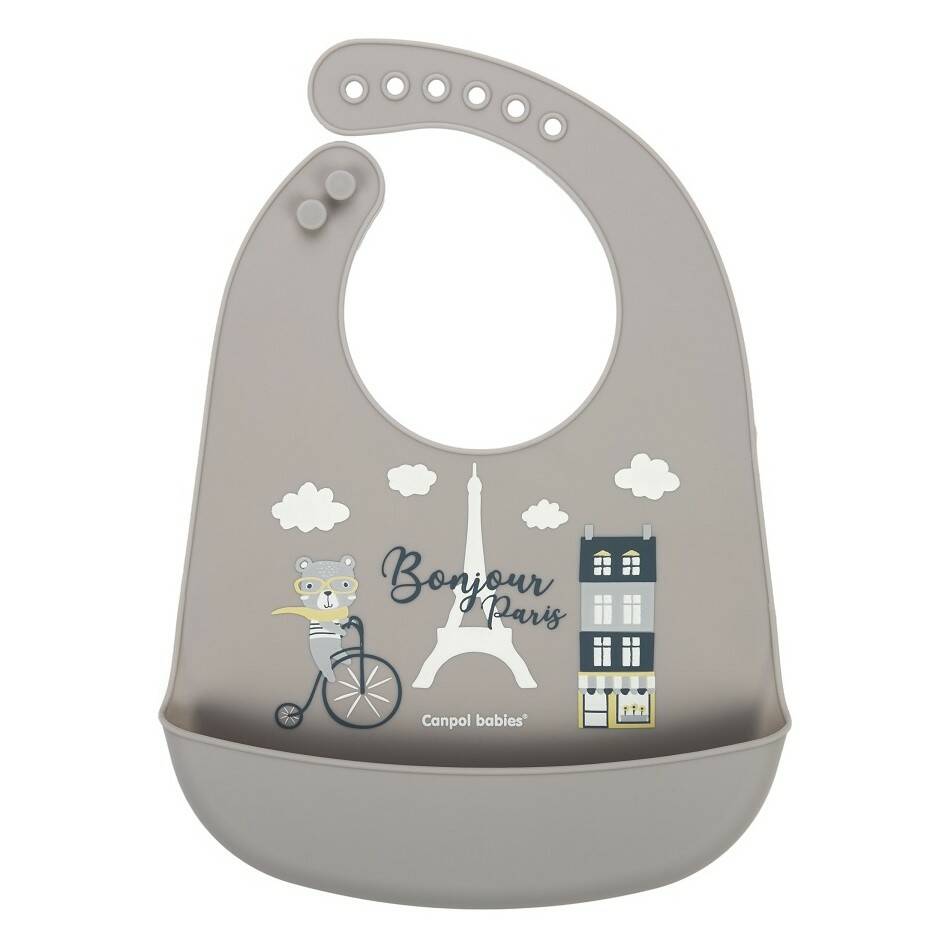 CANPOL Canpol babies Слинявчик силіконовий з кишенькою Bonjour Paris - бежевий 74/027_bei CANPOL