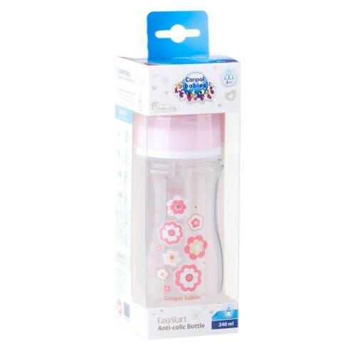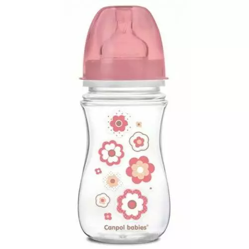 CANPOL Пляшка з широким отвором антиколікова Easystart - Newborn baby 240 мл рожеві квіти 35/217_pin