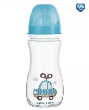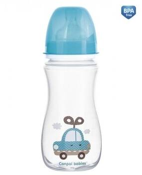 CANPOL Пляшка з широким отвором антиколікова Easystart - Toys 300 мл синя машина 35/222_blu