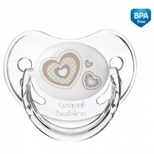 CANPOL Пустушка силіконова анатомічна 0-6 м-ців Newborn baby (1 шт) бежеві серця 22/565_bei