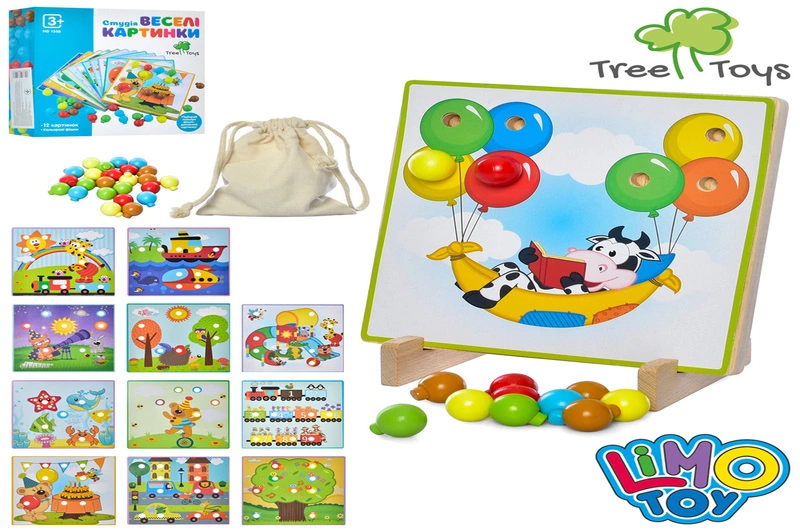 Дерев'яна гра MD 1598 мозаїка, зображення 12 шт, кольорові фішки, в коробці Мет79902