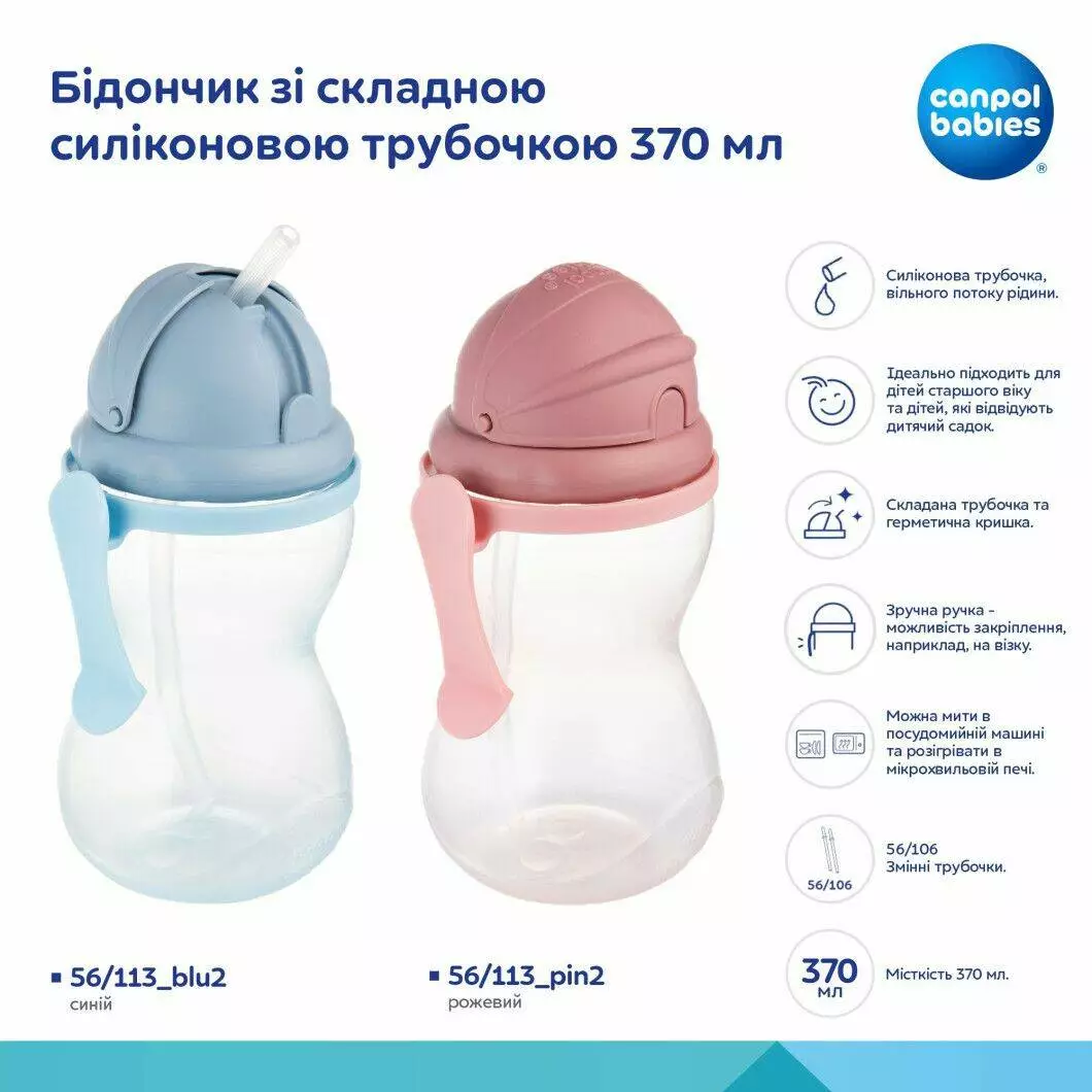 Дитячий посуд Бідончик зі складною силіконовою трубочкою Canpol babies рожевий 370 мл 56/113_pin2 Canpol Babies