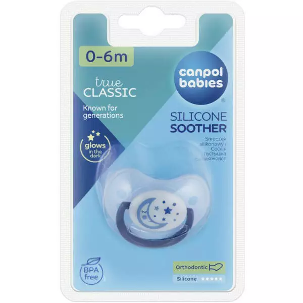 Дитячий посуд Пустушка силіконова анатомічна Canpol babies 0-6 м-ців Night Dreams - блакитна 22/500_blu_new Canpol Babies