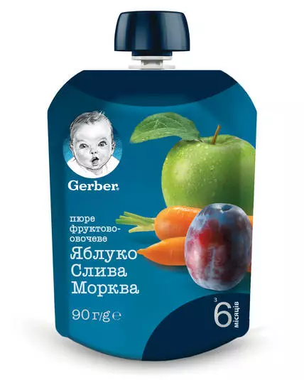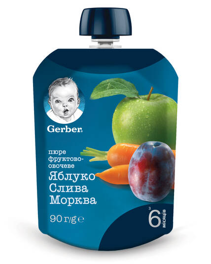 GERBER Пауч Пюре фруктове Яблуко Слива Морква, з 6 місяців, 90г УКТЗЕД 2008979800 12357934