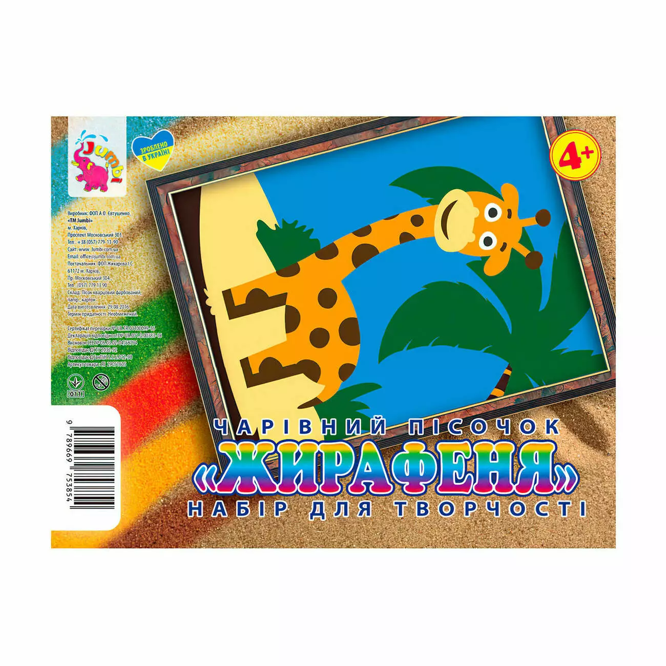 Гр Набір для творчості, картинка з піску "Жираф" (укр) 9789669753854 "Jumbi" 115477 7..