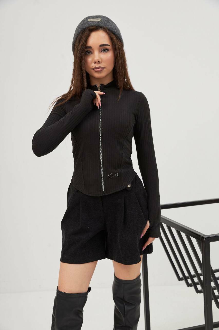 Кофта лонслів MIU замок дів. чорний фліз рубчик 9833425 MADLEN