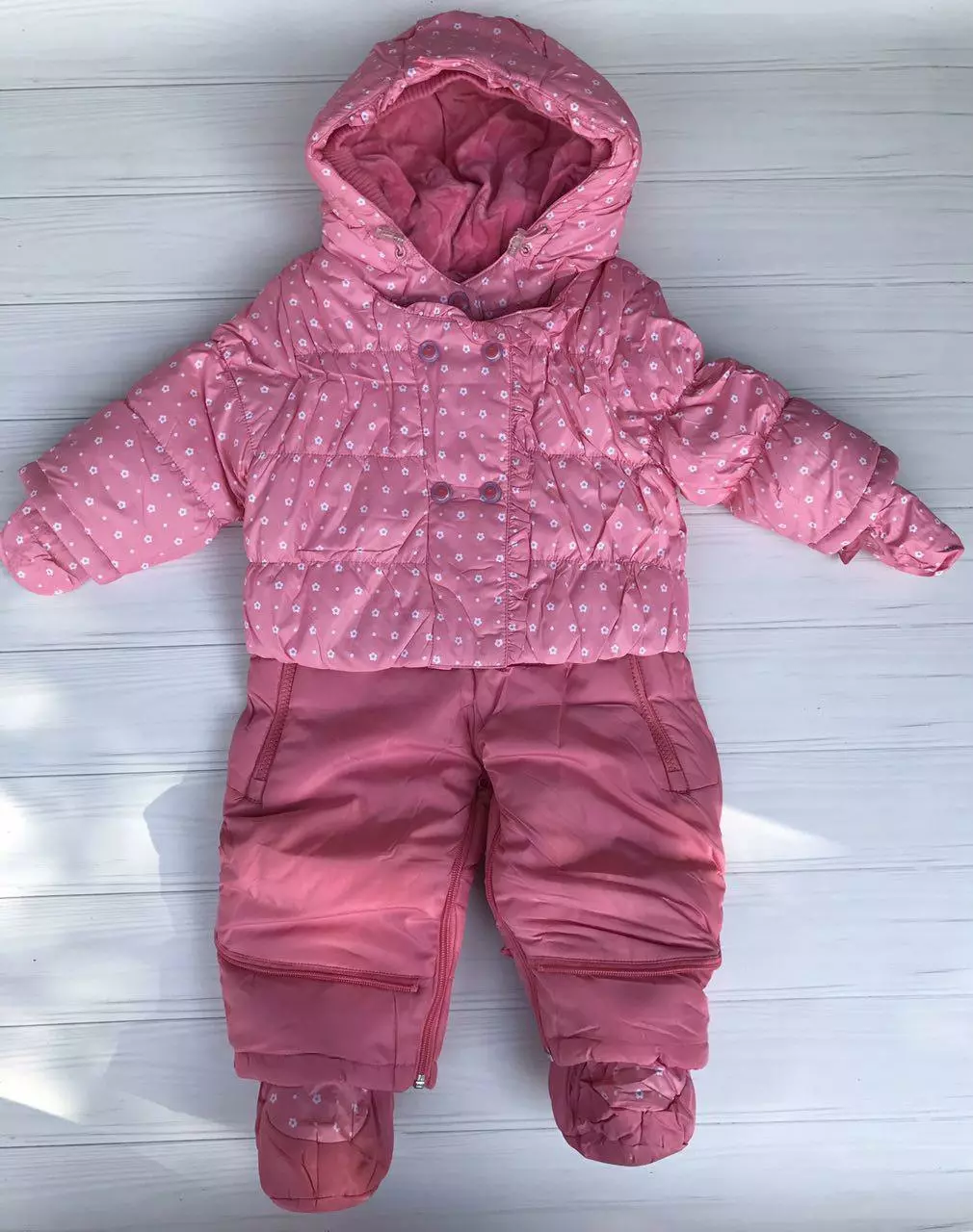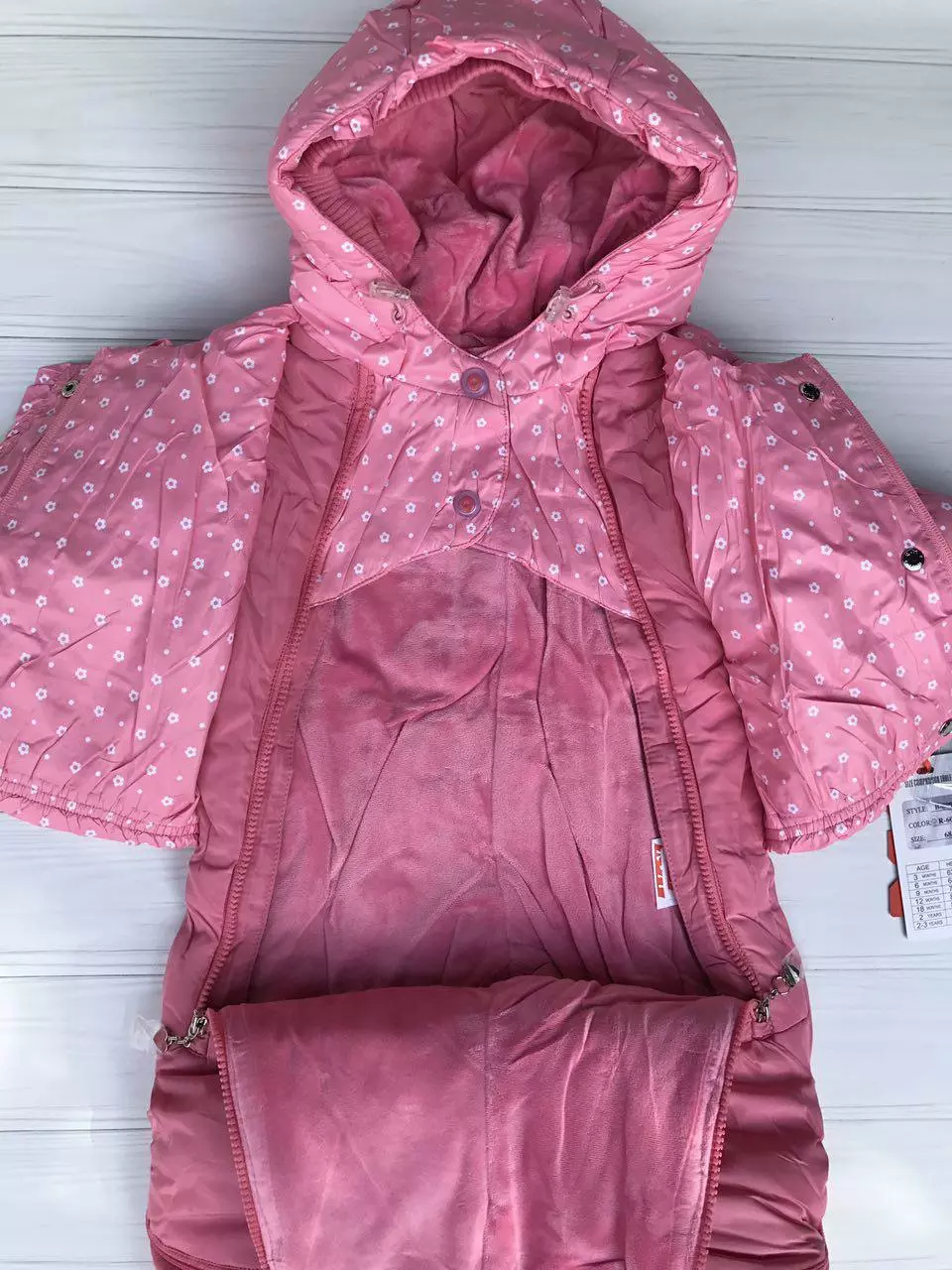 Комбинезон-трансформер "Really Master", верх - плащевка на теплой флисовой подкладке, утеплен холофайбером. Благодаря двум длинным молниям с ветрозащитными планками, расположенным в передней части комбинезона, его легко надевать и снимать. Горловина оформлена двумя клапанами на кнопках, что надежно защищает шею малыша от холода. За счет молний на брючинах комбинезон можно трансформировать в конверт с рукавами. Низ рукавов отделан трикотажными манжетами, которые мягко обхватывают запястья, не позволяя просачиваться холодному воздуху. По краю капюшон отделан широким кантом из двойного слоя трикотажного полотна и дополнительно утягивается стяжками. В комплект входят: две утепленные варежки (без пальчика), плотность облегания которых регулируется с помощью кнопки, и два утепленных носочка, которые пристегиваются к низу комбинезона с помощью кнопок.