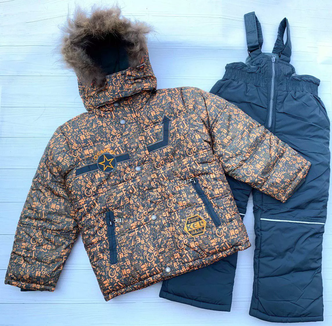 Комплект зимний для мальчика куртка, полукомбинезон, жилет на овчине, модель 1320