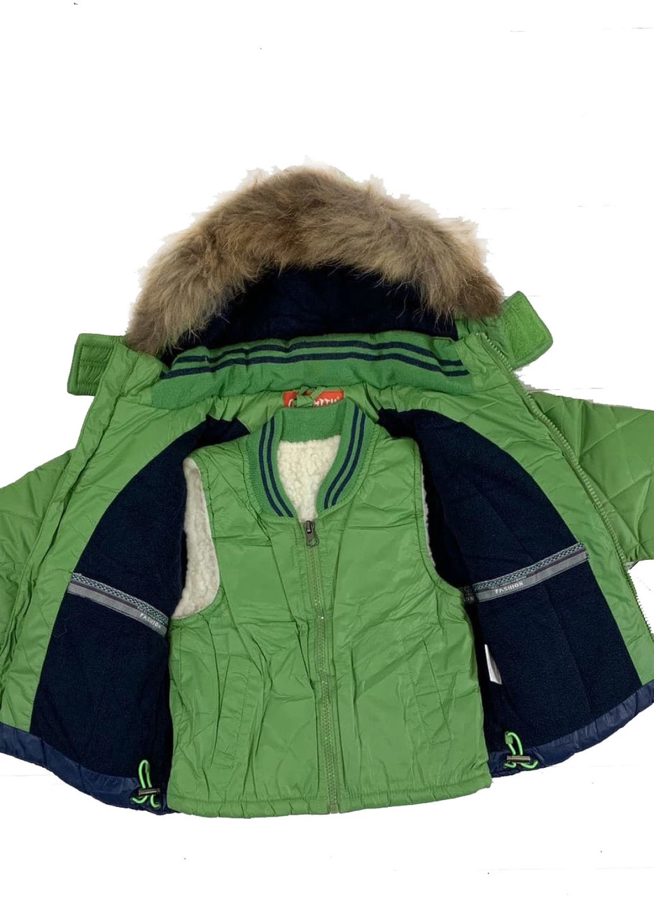 Комплект зимний для мальчика куртка, полукомбинезон, жилет на овчине, модель 1901