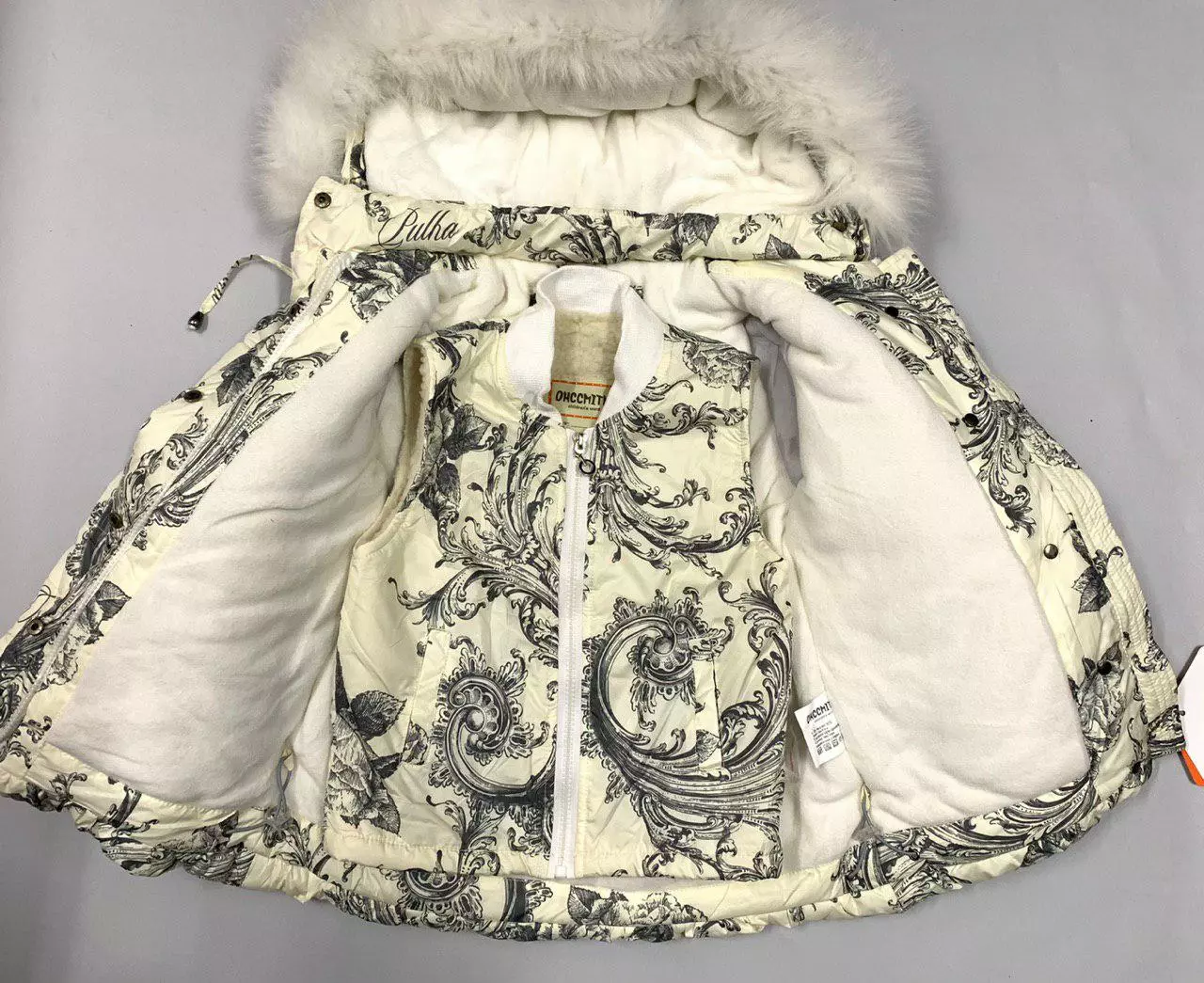 Наполнитель: холофайбер, подкладка - флис, жилет на овчине.