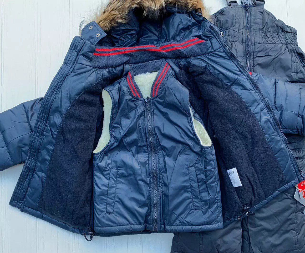 Наполнитель: холофайбер, подкладка - флис, жилет на овчине.