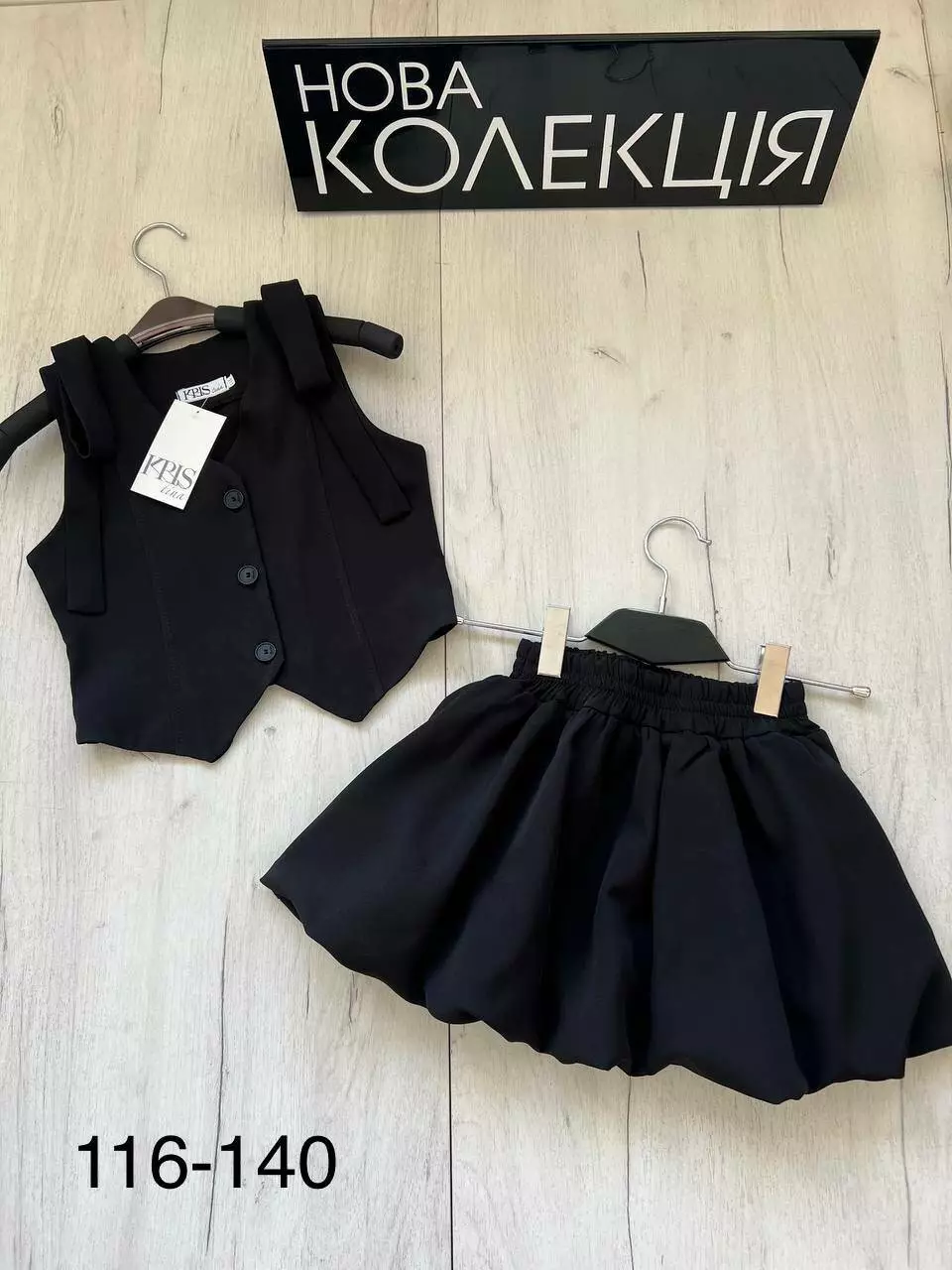 <p>Колір: чорний <br />Розміри: 116–140<br />Тканина: якісний костюмний матеріал<br />Підкресліть стиль та індивідуальність вашої модниці разом з KRIS kids!</p>