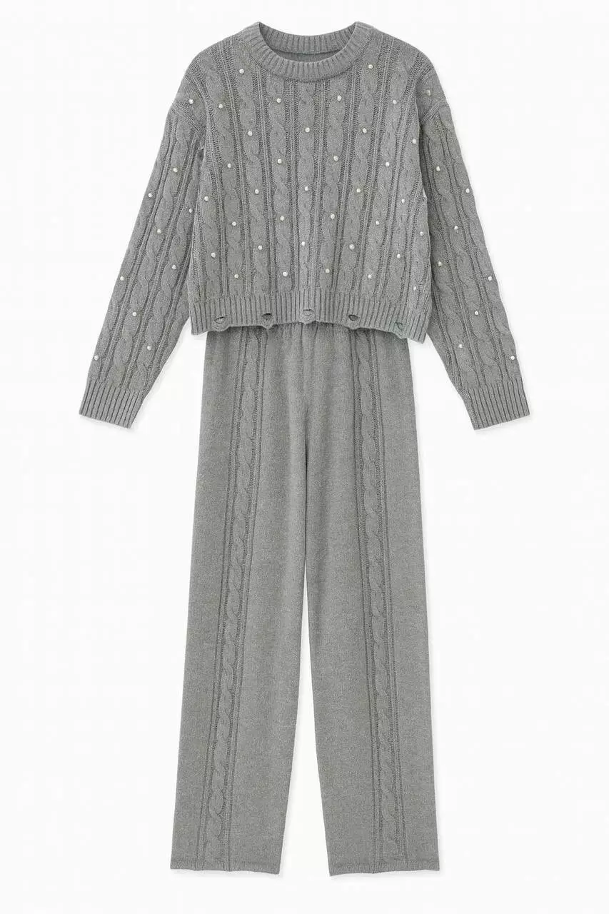 Костюм кежуал дівчаткам КОСИЧКИ-ПЕРЛИНКИ дів. сірий вязка 3525 TH&TY