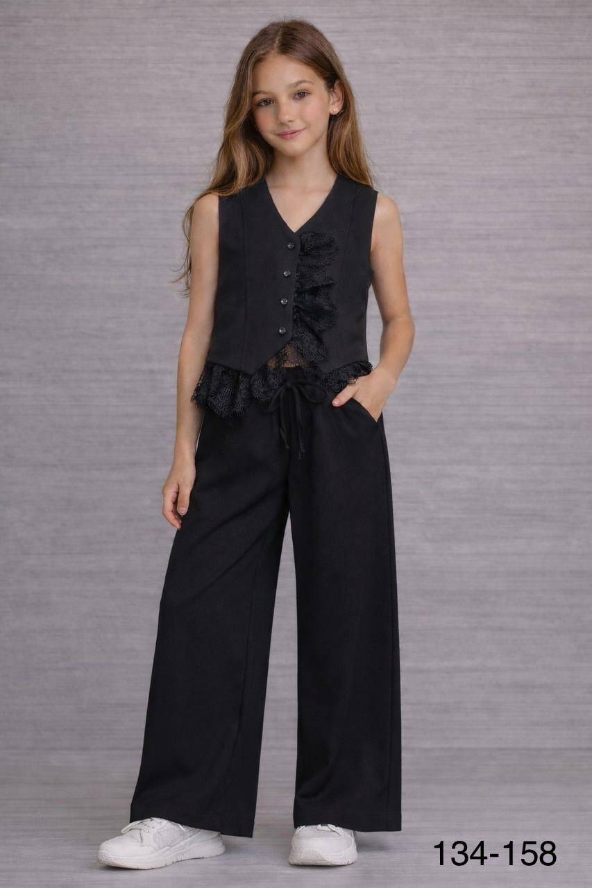 Костюм кежуал дівчаткам Стильний жилетка з кружевом+штани дів. чорний Барбі 9833605 KRISTINA