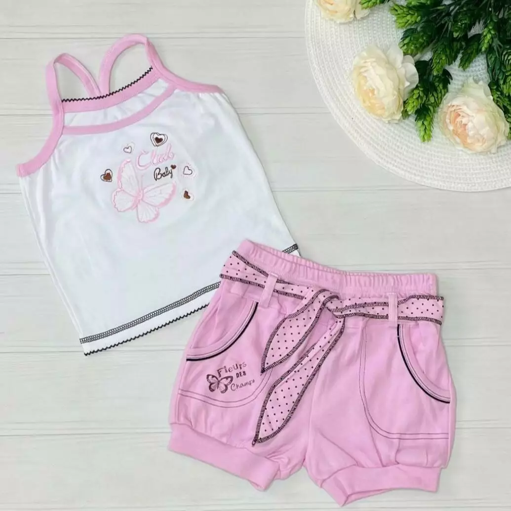 Костюм (майка,шорти) дів. Білий/рожевий 4012-16 GARDEN