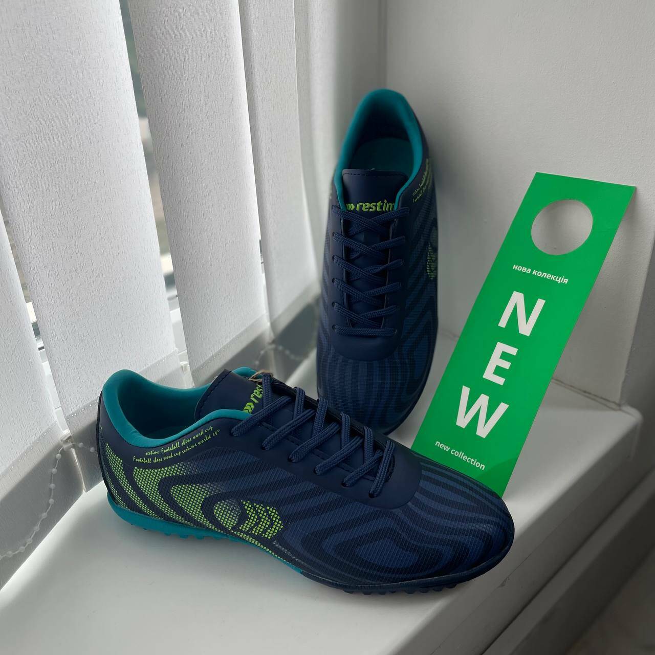 Кросівки ФУТЗАЛИ хлоп. синьо-салатові штучна шкіра 023215-1 Restime