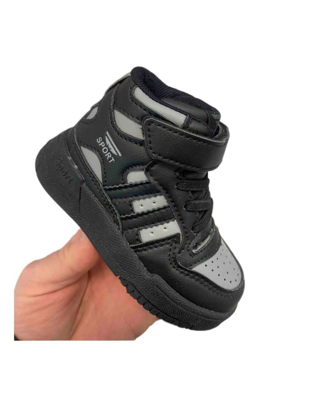 Кросівки ХАЙТОПИ уни. ЧОРНО/СІРІ еко шкіра /текстиль/устілка шкіра 6511-7 КАНАРЕЙКА