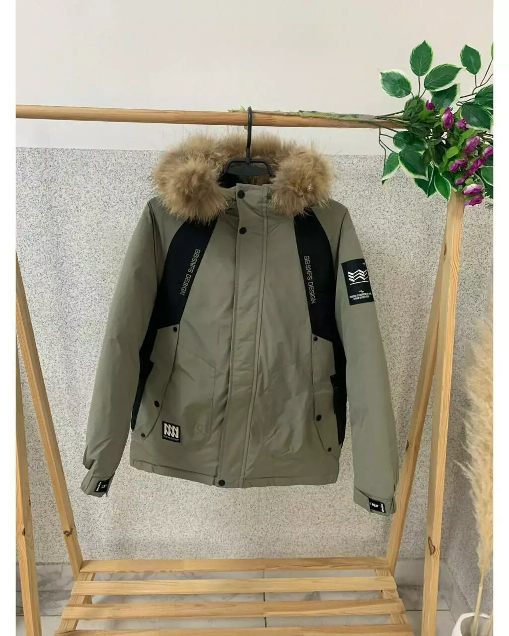 Куртка олива з чорним та хутром натур хлоп. олива 24805 TN & TY
