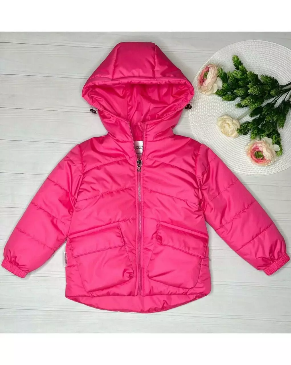 Куртка з накладними кишенями дів. Малинова плащівка/х/б/синтепон