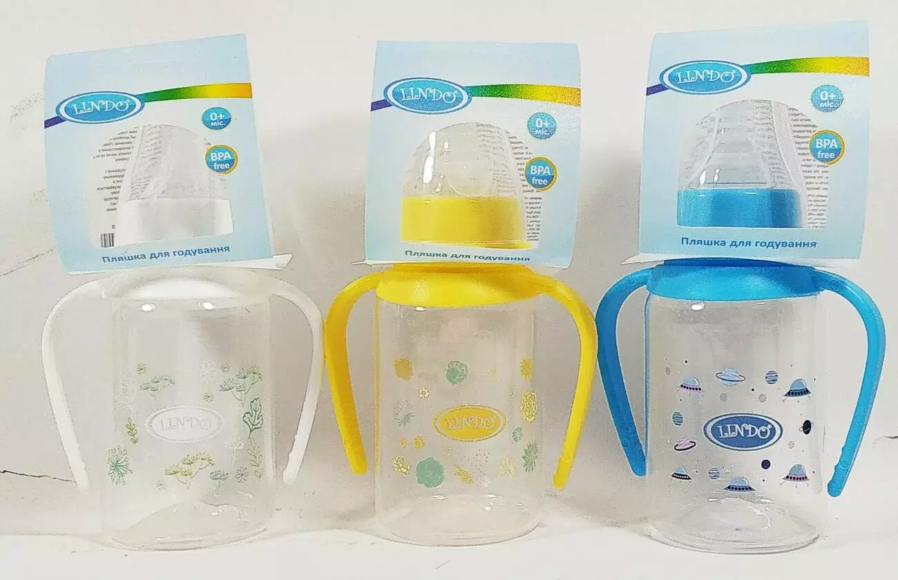 <p>LI140 пласт.125мл. кругла з ручками та сил. соскою
