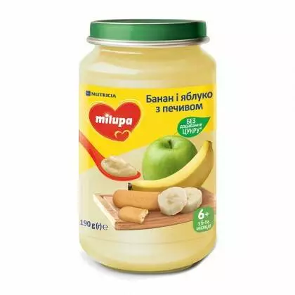 MILUPA Нутриція "Milupa" Дитяче пюре Банан яблуко з печивом 190г (2023.02.12, 12.2-18-3/6617, 12.02.2023) 4031