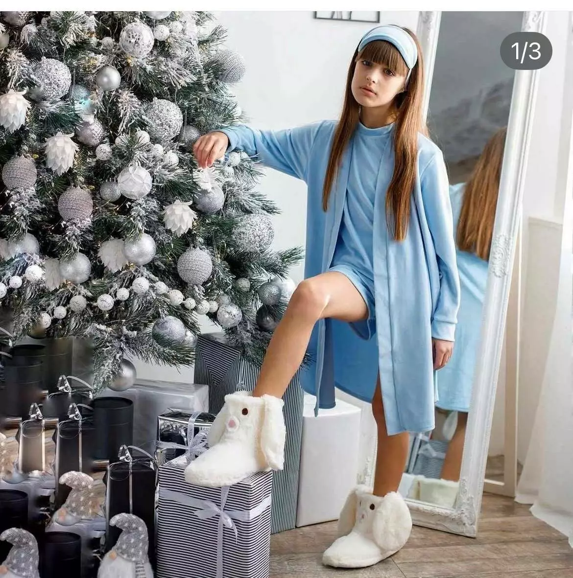 Піжама Домашній (Штани, шорти, футболка, халат, пов'язка) дів. блакитний велюр 9833418 ELLEN