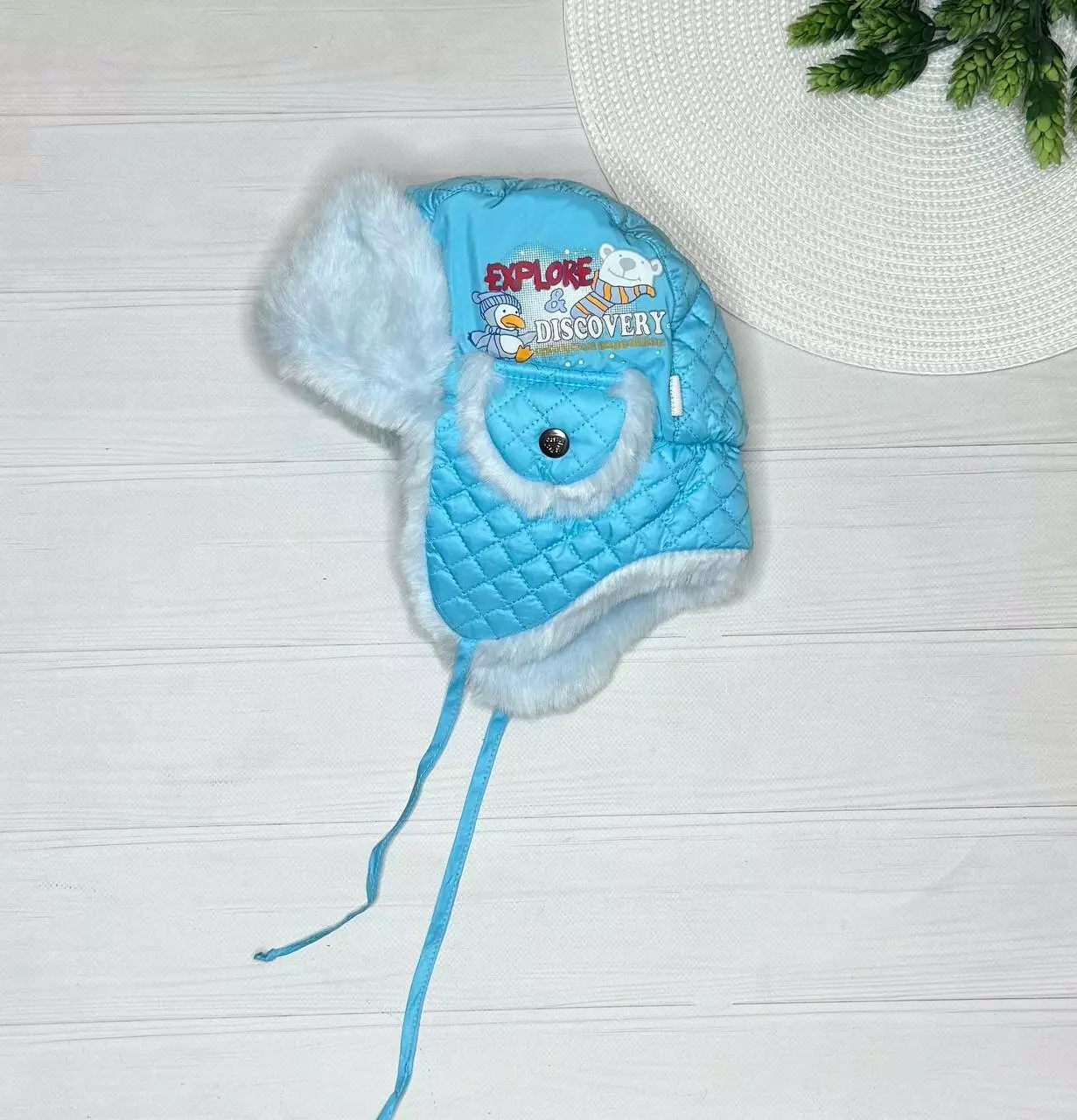 Шапка плащівка+утеплювач+бавовна хлоп. Блакитний 7634424-1 МОДНЯШКИ
