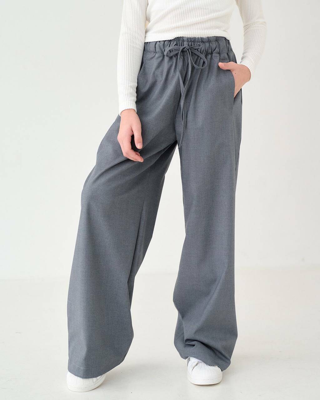 Штани ПАЛАЦЦО пояс на резинці дів. сірий преміум брючна 2218 Boss kids
