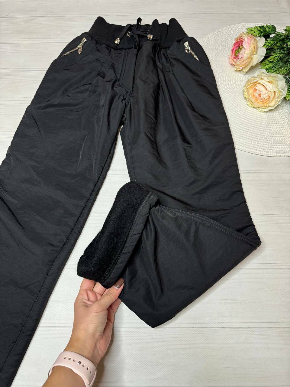 Штани утеплені дів. Чорний філіз 2770 DIREN