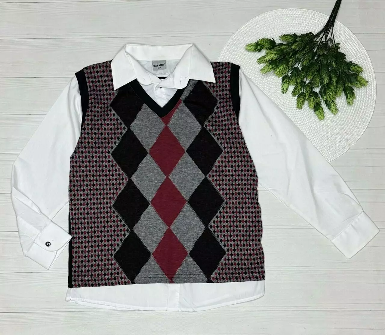 Сорочка з імітацією жилетки хлоп. Білий 7505 MARIONS