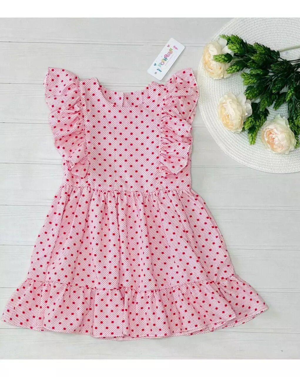 Сукня Горошки з рюшами дів. Штапель 23060 МОДНЯШКИ