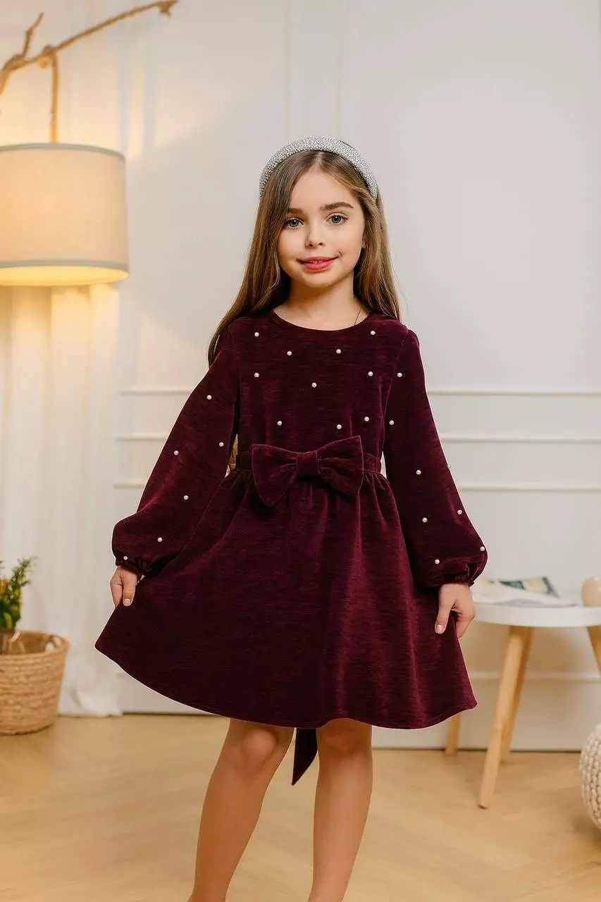 Сукня Святкова ПЕРЛИНА дів. бургунді ОКСАМИТ 9833393 Miniledilok