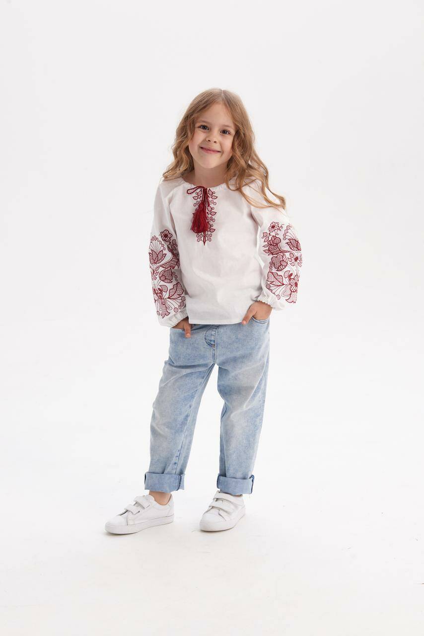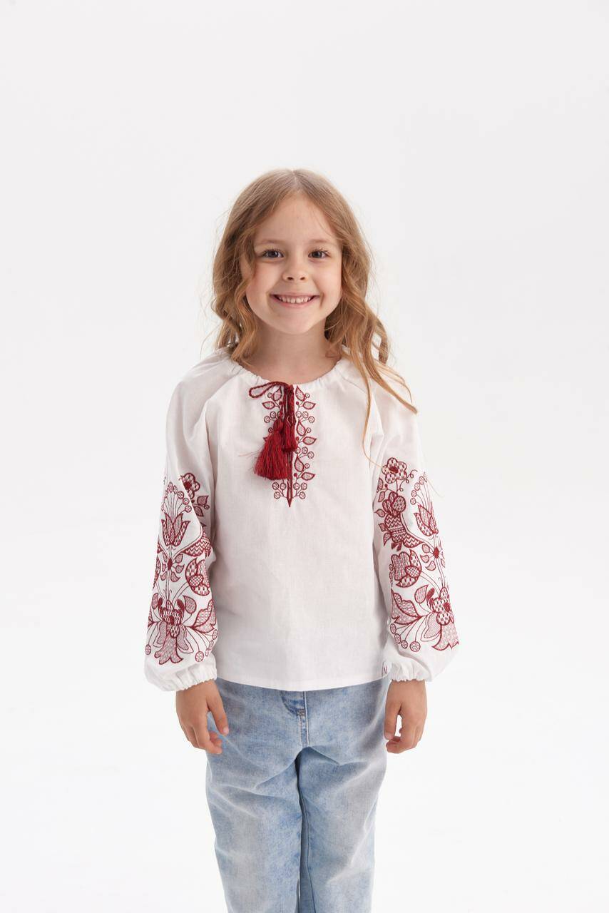 Вишиванка Блуза дитяча "Барва" бла з бордовим 104 rd577104 Merezhka