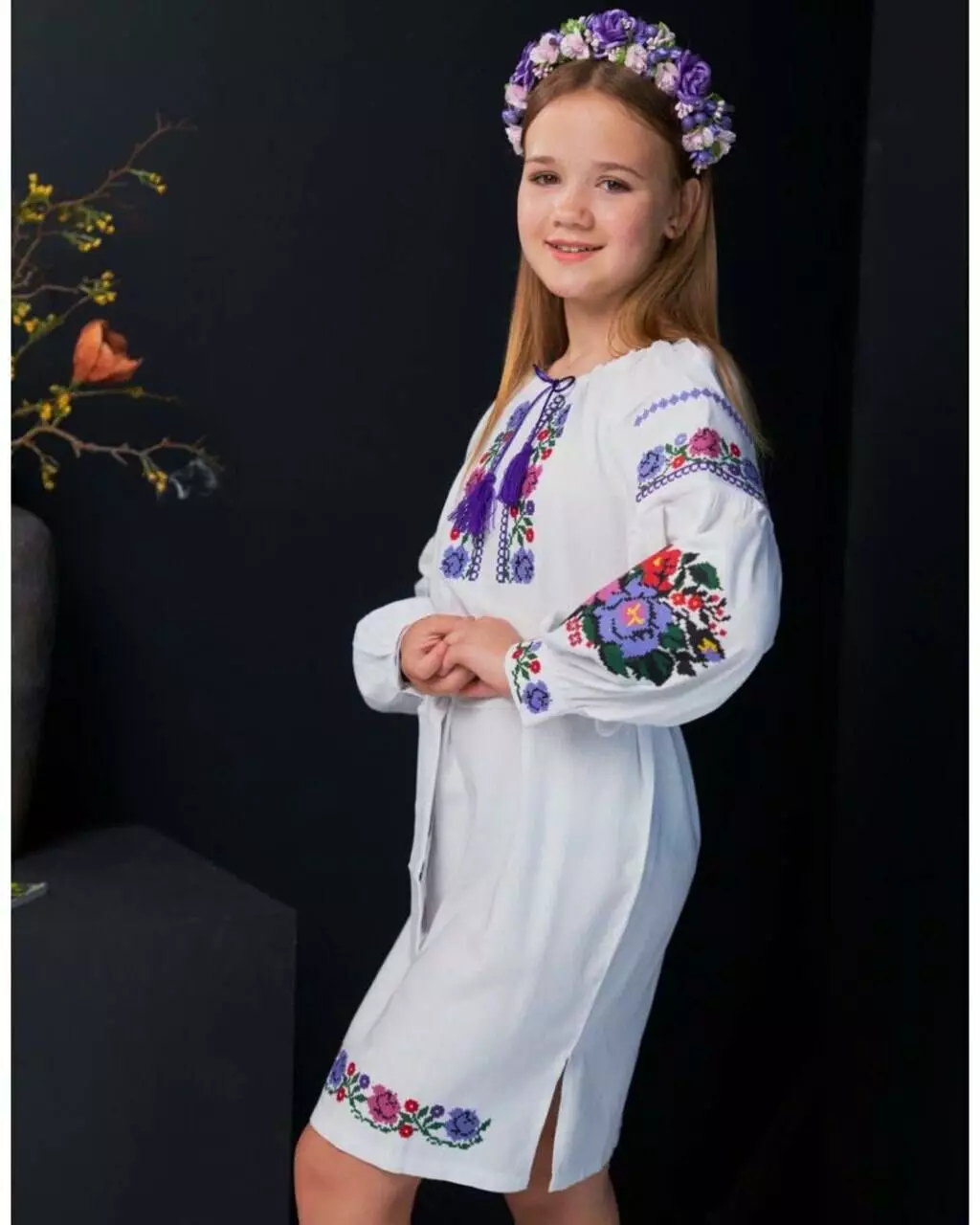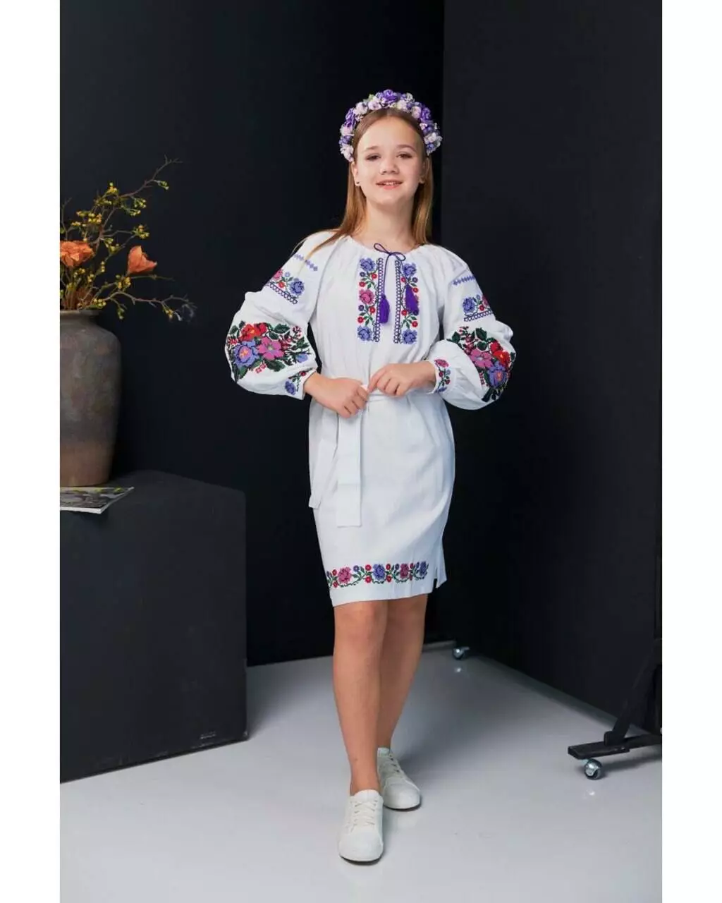 <p>Стильна біла сукня-вишиванка для дівчинки! Прикрашена