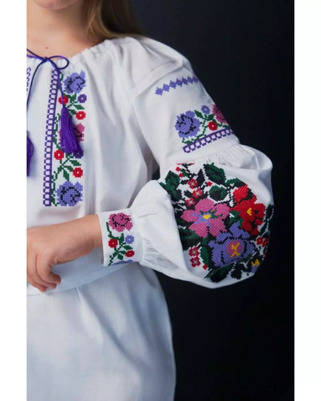 машинною вишивкою по рукавах, грудях та низу виробу у вигляді