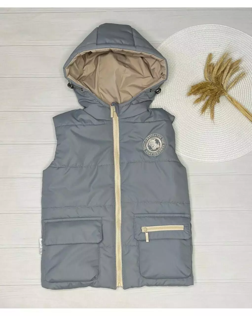 Жилет Сірий/бежевий 23054 МОДНЯШКИ